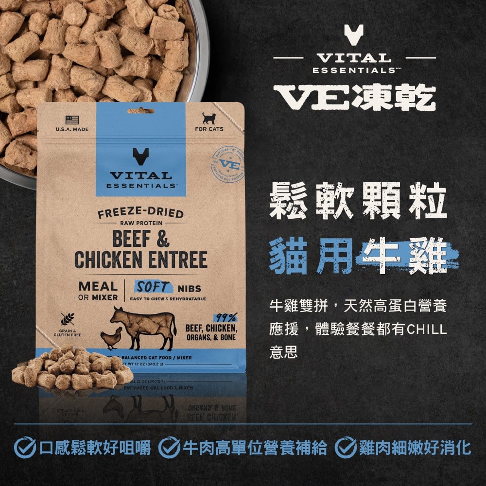 - 來自美國「VITAL ESSENTIALS」,採用全球獨創分離溫層技術,最大程度保留天然營養與原始風味。鬆軟顆粒牙口相對友善,老貓老犬必吃。